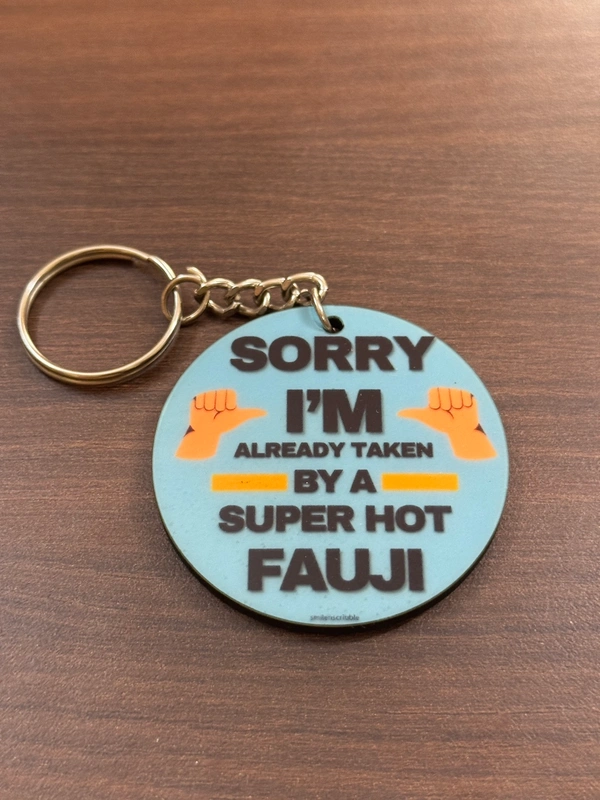 This keychain is more than just an accessory; it's a playful declaration of your love and commitment. Attach it to your keys or bag and let everyone know you're already taken by a "Super Hot Fauji!"