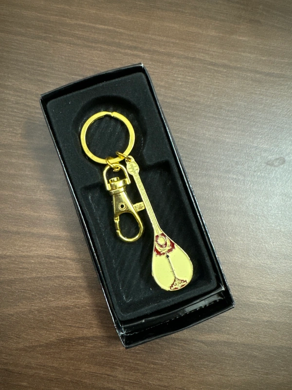 Showcase your love for music and Central Asian culture with this charming Dombra keychain. The Dombra, a traditional two-stringed Kazakh instrument, is beautifully replicated in miniature form with intricate details.