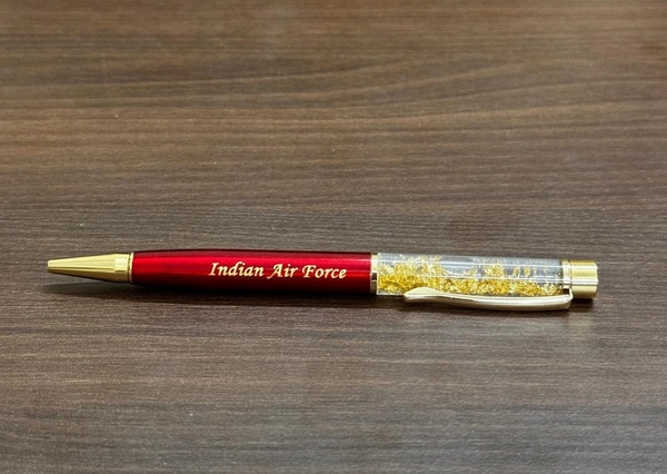Celebrate the spirit of aviation and showcase your pride for the Indian Air Force with this eye-catching golden flake pen.