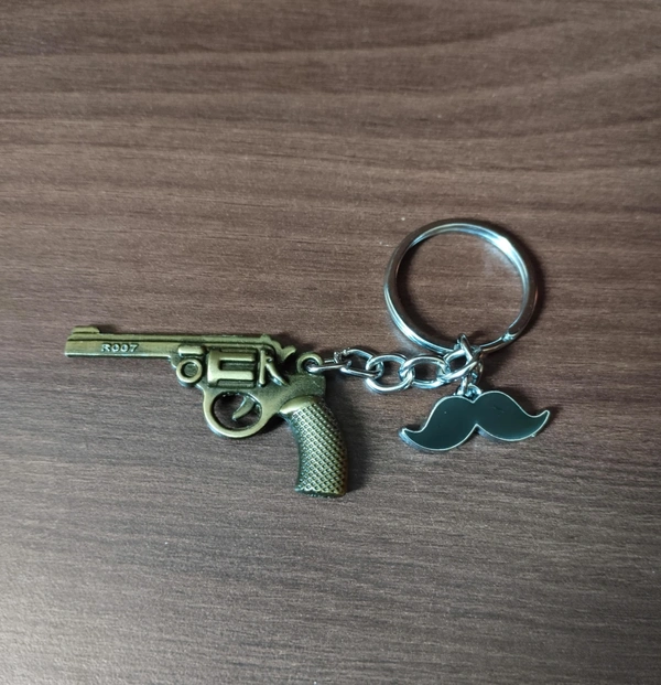 Metallic Gun and mustaches Keychain
