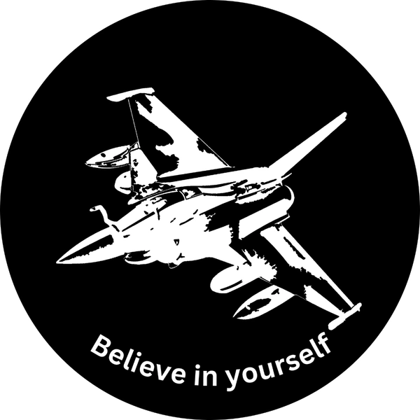 Embrace the power of ambition and determination with this inspiring pin and magnet combo! Featuring a sleek silhouette of a fighter jet soaring across a bold black background, this badge is a symbol of fearless pursuit and unwavering self-belief.