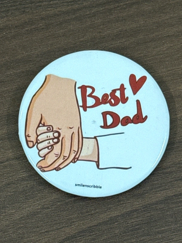 Celebrate the incredible bond between father and child with this heartwarming pin and magnet combo! This adorable badge features a touching illustration of a parent and child holding hands, along with the words "Best Dad" in bold red letters, making it a heartfelt tribute to the special dads in our lives.