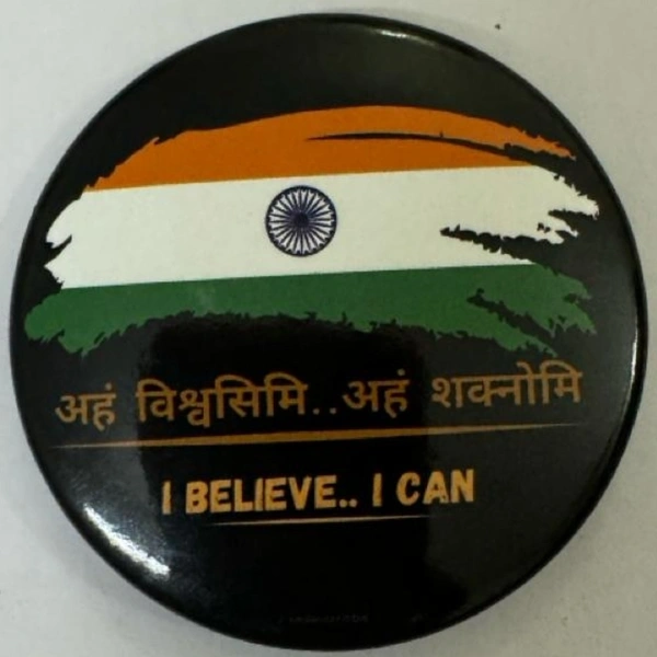 Showcase your patriotism and unwavering determination with this unique accessory that doubles as a stylish pin and a handy magnet! Featuring the vibrant Indian flag and an inspiring message in both Hindi and English, this badge is the perfect way to express your love for India and your belief in yourself.