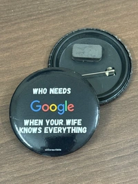 Show your appreciation for your wife's infinite wisdom with this funny pin and magnet combo! Featuring the playful question "Who Needs Google?" and the cheeky answer "When Your Wife Knows Everything," this badge is a lighthearted tribute to the all-knowing wives out there.