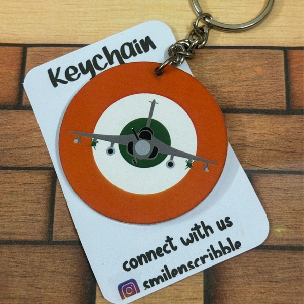 Honor the Indian Air Force with this stylish wooden keychain featuring the iconic roundel and a detailed fighter jet illustration. A perfect accessory for air force personnel, aviation enthusiasts, or anyone who appreciates the valor of the IAF.