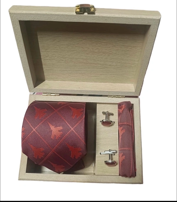 Su 30 Aircraft Embroidered Tie Set with Pocket Square, Cuff Links & Customised Wooden Box
